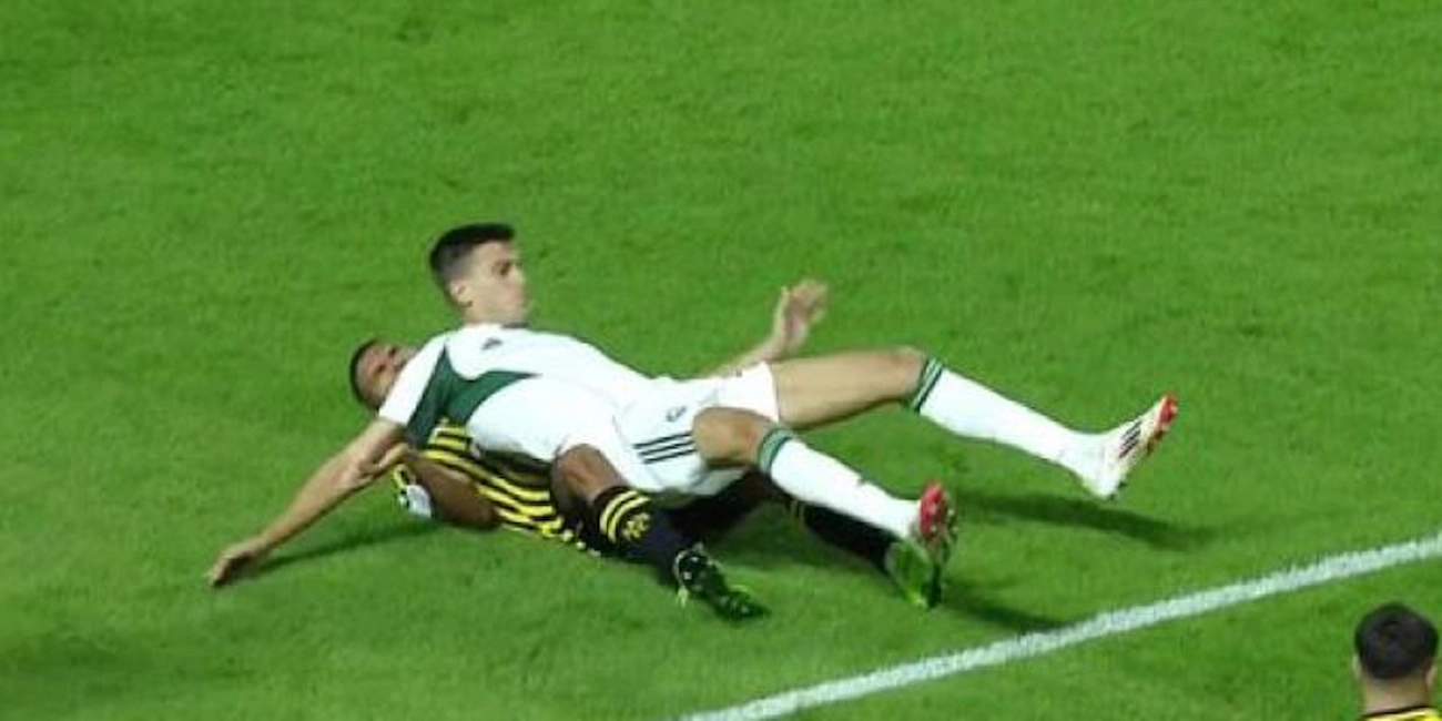 «Σε αυτή την περίπτωση ο αμυντικός του Άρη αγκαλιάζει τον αντίπαλό του, από τον λαιμό με το αριστερό του χέρι. Αν και το μαρκάρισμα ξεκινάει εκτός μεγάλης περιοχής, συνεχίζεται και εντός αυτής, εμποδίζοντας τον επιτιθέμενο να παίξει τη μπάλα. Εδώ δεν δόθηκε το πέναλτι, ούτε παρενέβη, όπως αναμενόταν, το VAR».
