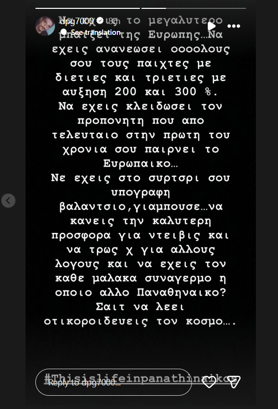 Ένα νέο μήνυμα από τον Δημήτρη Γιαννακόπουλο στον προσωπικό του λογαριασμό στο Instagram άναψε ξανά τη συζήτηση γύρω από τις κινήσεις της ΚΑΕ Παναθηναϊκός.