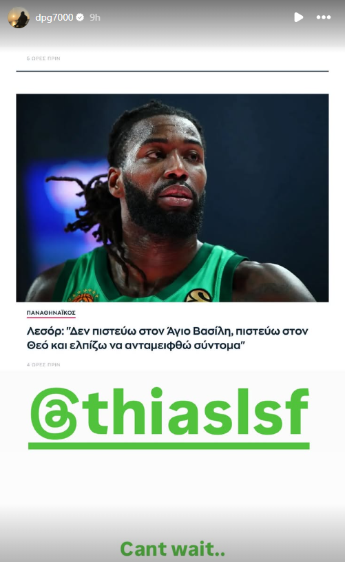 Τέλος, η επιβεβαίωση της παρουσίας του στο ντέρμπι ήρθε μέσα από διάλογο σε Instagram Story με τον γνωστό φίλο της ομάδας, Φρι, όπου ο «DPG» ξεκαθάρισε πως θα βρίσκεται δίπλα στους παίκτες του στην πρώτη μεγάλη μάχη του 2026.