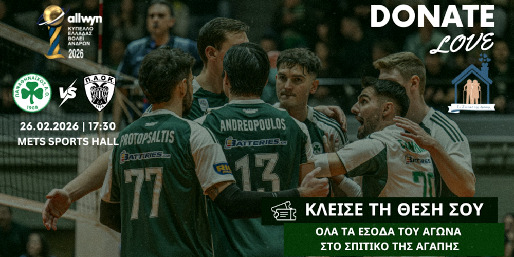 Σημαντική πρωτοβουλία από τον Παναθηναϊκό Αθλητικό Όμιλο, ο οποίος όχι μόνο ανοίγει τις πόρτες του για το σημερινό ματς Κυπέλλου με τον ΠΑΟΚ στο κλειστό του Μετς, αλλά επιλέγει να μετατρέψει τον αγώνα σε πράξη κοινωνικής προσφοράς. Με γενική είσοδο μόλις 3 ευρώ και με όλα τα έσοδα να κατευθύνονται στο «Σπιτικό της Αγάπης», το «Τριφύλλι» καλεί τον κόσμο να στηρίξει μια σπουδαία προσπάθεια.