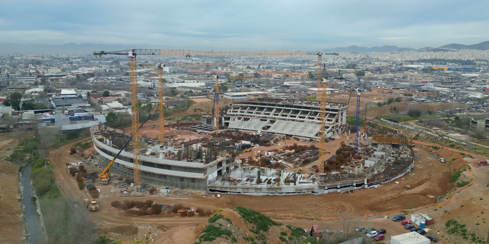 Στο σημείο όπου υψώνεται το νέο γήπεδο του Παναθηναϊκού, οι εργασίες προχωρούν με εντυπωσιακό ρυθμό. Η θεμελίωση και οι πρώτες κατασκευαστικές φάσεις έχουν ήδη πάρει μορφή, με τα συνεργεία να εργάζονται αδιάκοπα ώστε να τηρηθεί το χρονοδιάγραμμα. Η εικόνα των εργατών πάνω στον οπλισμένο σκελετό δείχνει πως το project έχει πλέον περάσει σε φάση ουσιαστικής ανάπτυξης.
