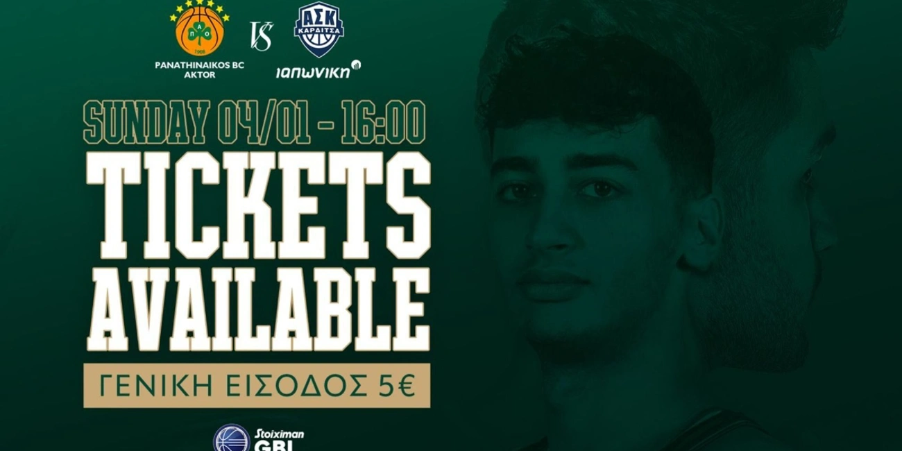 «Η ΚΑΕ Παναθηναϊκός AKTOR, θέλοντας να επιβραβεύσει τους φιλάθλους της με τον ερχομό του 2026 για την αγάπη, τη στήριξη και την αφοσίωσή τους στην ομάδα μας, ορίζει γενική είσοδο 5 ευρώ για την αναμέτρηση της προσεχούς Κυριακής (04/01, 16:00) με αντίπαλο την Καρδίτσα ΙΑΠΩΝΙΚΗ στο Telekom Centher Athens, για την 13η αγωνιστική της Stoiximan GBL.