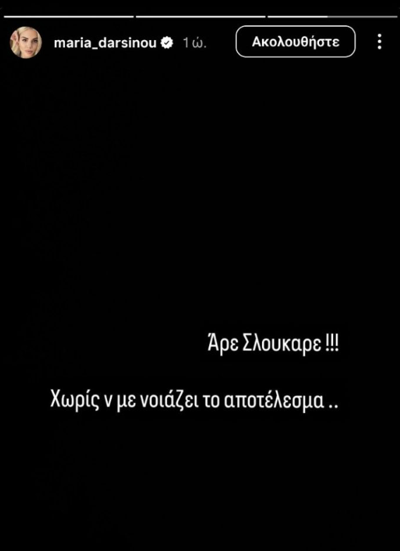 Μετά το τέλος του ντέρμπι, η Μαρία Δαρσινού, σύζυγος του αρχηγού των «πράσινων», έκανε μια λιτή αλλά γεμάτη νόημα ανάρτηση στο Instagram, γράφοντας: