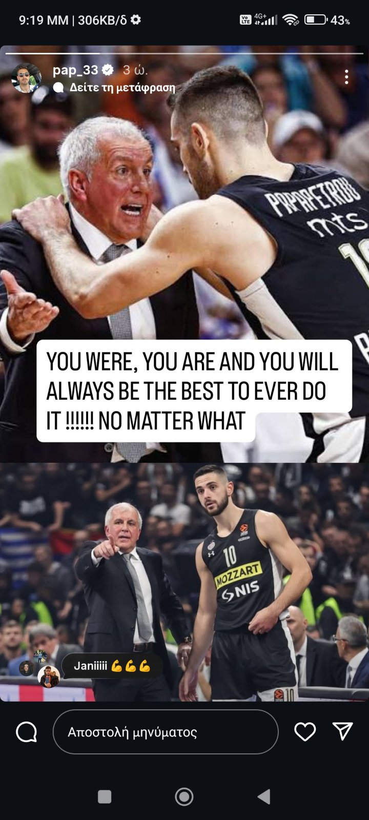 Θυμίζουμε πως οι δυο τους συνυπήρξαν στον εν λόγω σύλλογο στη σεζόν 2022/2023, όπου μαζί κατέκτησαν το εγχώριο πρωτάθλημα. Συγκεκριμένα στην ανάρτησή του ο άλλοτε αρχηγός του «Επτάστερου» αναφέρει: «Ήσουν, είσαι και θα είσαι πάντα ο καλύτερος! ;Ό,τι και αν συμβεί»