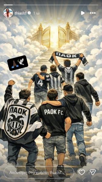 Φυσικά αυτή η θλιβερή είδηση δεν άφησε αδιάφορο τον Ματίας Λεσόρ, με τον Γάλλο σέντερ του Παναθηναϊκού Aktor να προχωρά σε μία συγκινητική ανάρτηση μέσα από τα social media. Σε αυτή απεικονίζονται κάποιοι φίλοι του ΠΑΟΚ να κατευθύνονται προς τις πύλες του Παραδείσου.
