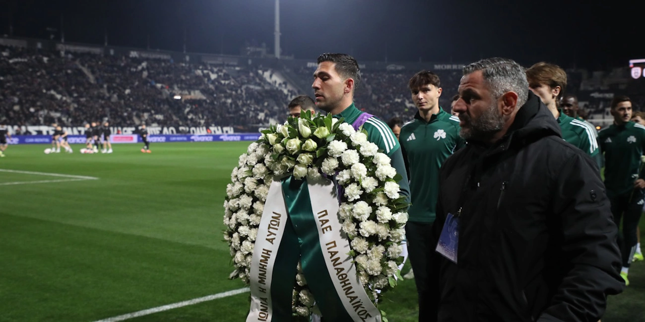 Πριν από την έναρξη της ρεβάνς με τον ΠΑΟΚ για τα ημιτελικά του Κυπέλλου Ελλάδος, η αποστολή του Παναθηναϊκού κατέθεσε στεφάνι στη μνήμη των φίλων του «Δικεφάλου του Βορρά» που έχασαν τη ζωή τους στη Ρουμανία.
