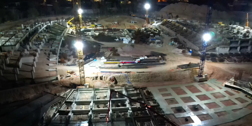 Νυχτερινά πλάνα με ρίψη μπετόν στο νέο γήπεδο του Παναθηναϊκού στον Βοτανικό. Η πρόοδος των έργων και το εντυπωσιακό νέο βίντεο.