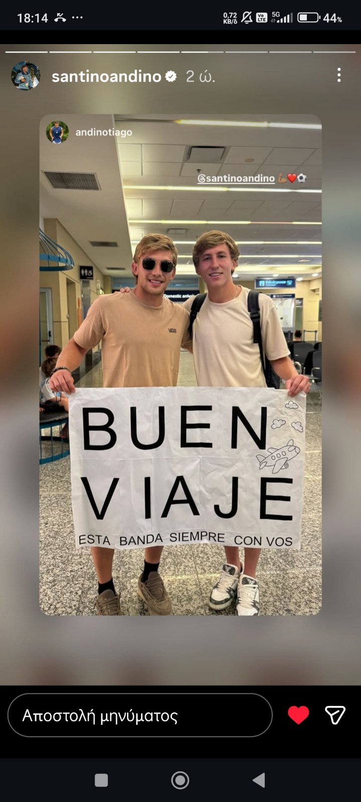 Φυσικά ο ταχύτατος εξτρέμ θέλησε να μοιραστεί αρκετές στιγμές από την αναχώρησή του με τους ακόλουθούς του στα social media, με αρκετούς φίλους και μέλη της οικογένειάς του να τον αποχαιρετούν και να του εύχονται τα καλύτερα για το μέλλον. Κάτι ανάλογο έπραξε με τη σειρά του και ο αδερφός του, Τιάγκο, με τον διεθνή με την U20 της Αργεντινής να είναι ιδιαίτερα ευδιάθετος.
